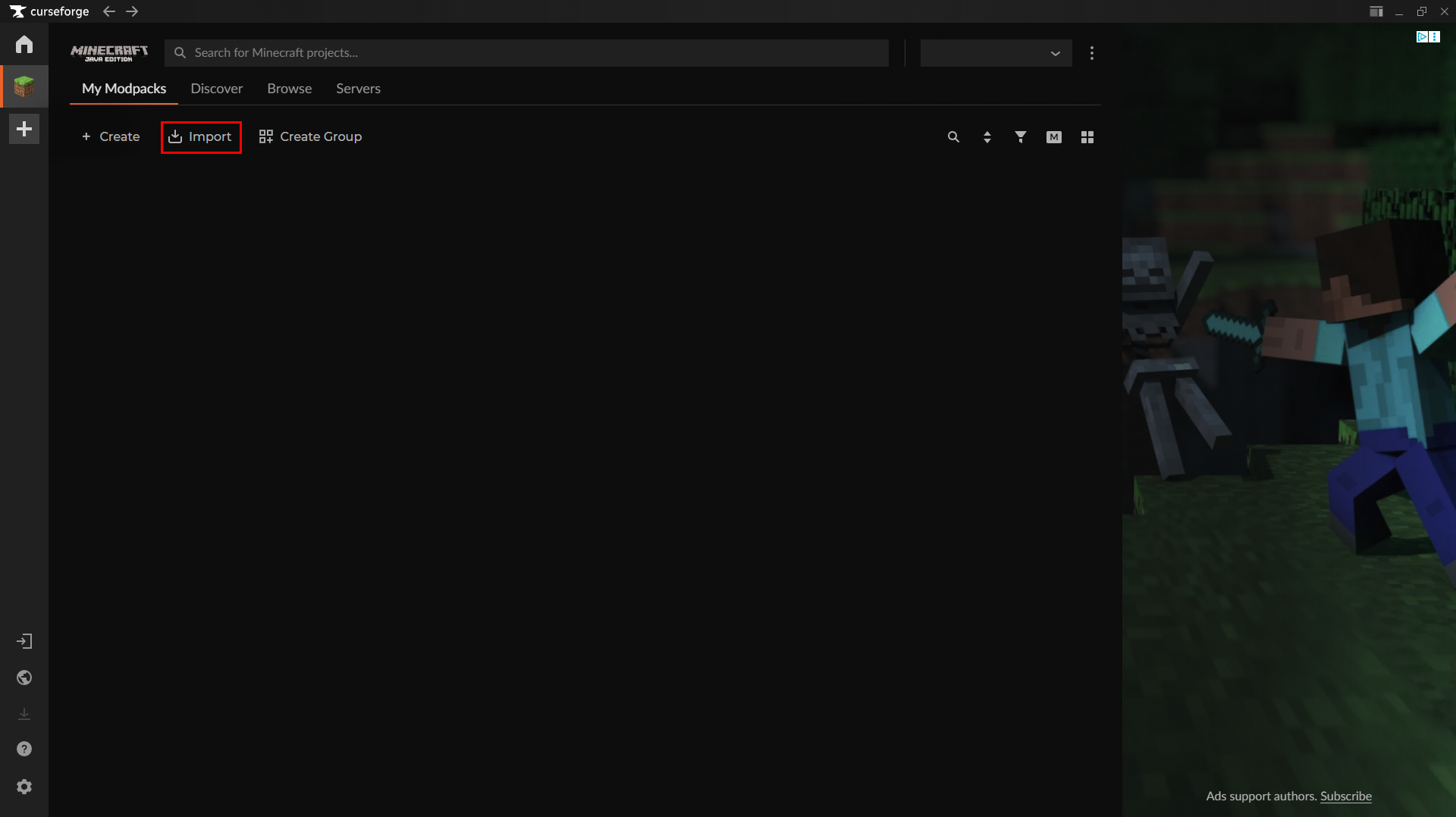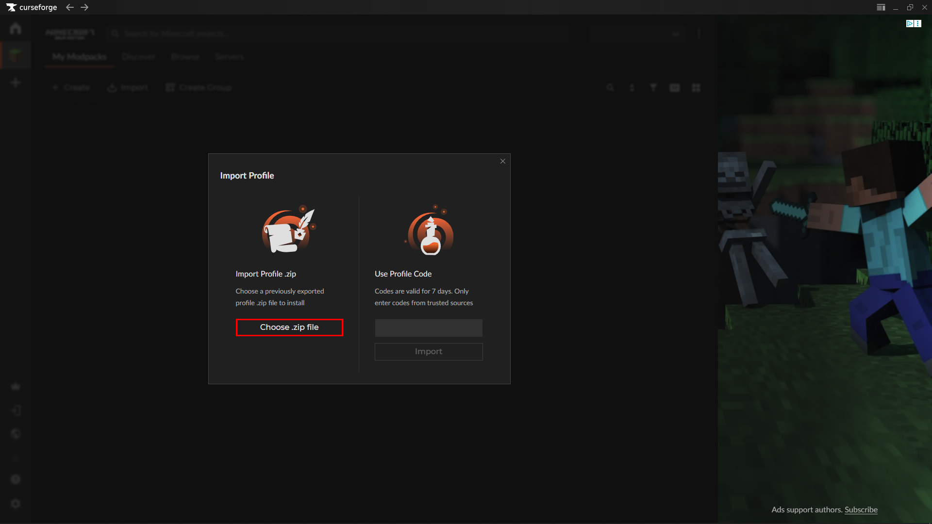 Import the Modpack